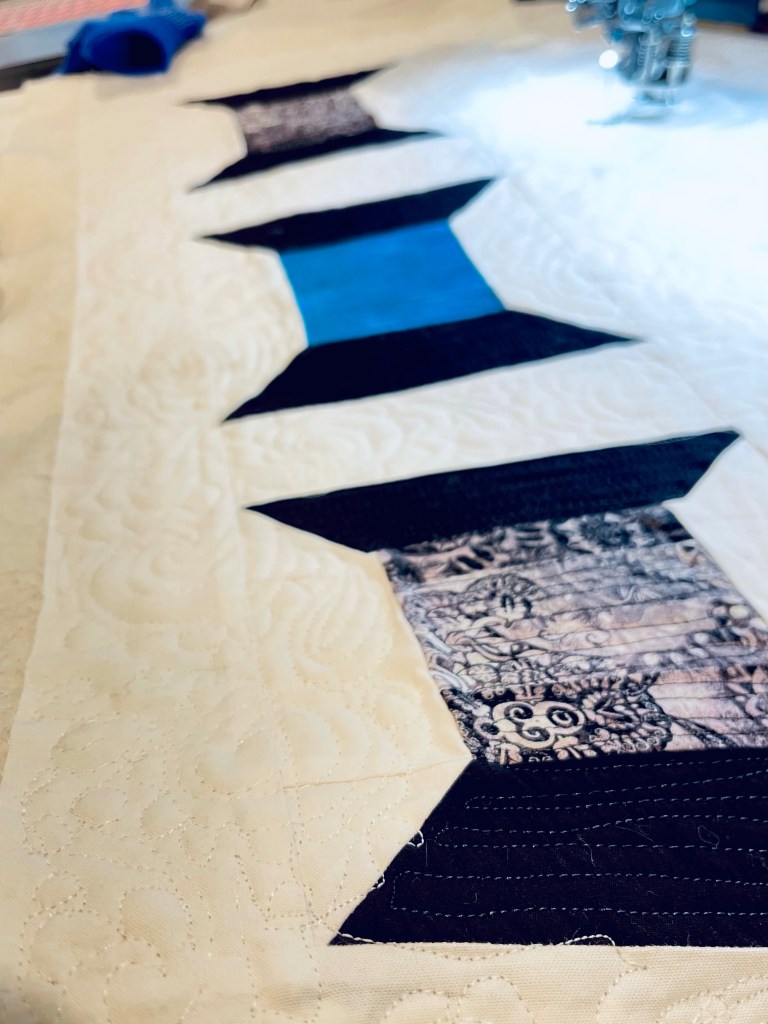 Run the placement lines so you can see where to lay the contrast strip for the name area in the center of the ornament.