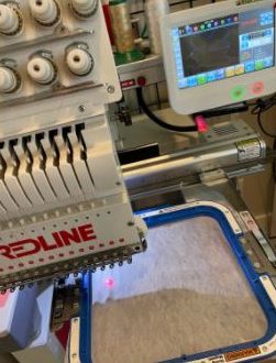 At your embroidery machine, run the placement for the design on cutaway stabilizer in your 4×4 hoop
